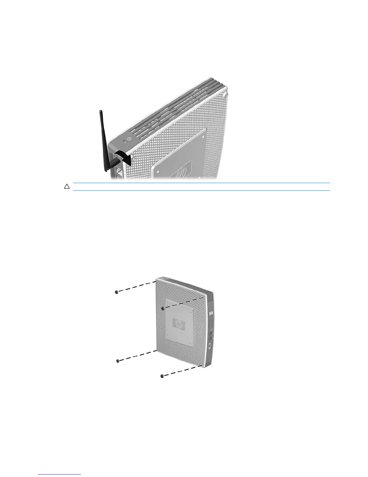 Screw the antenna in place on the rear of the thin client.