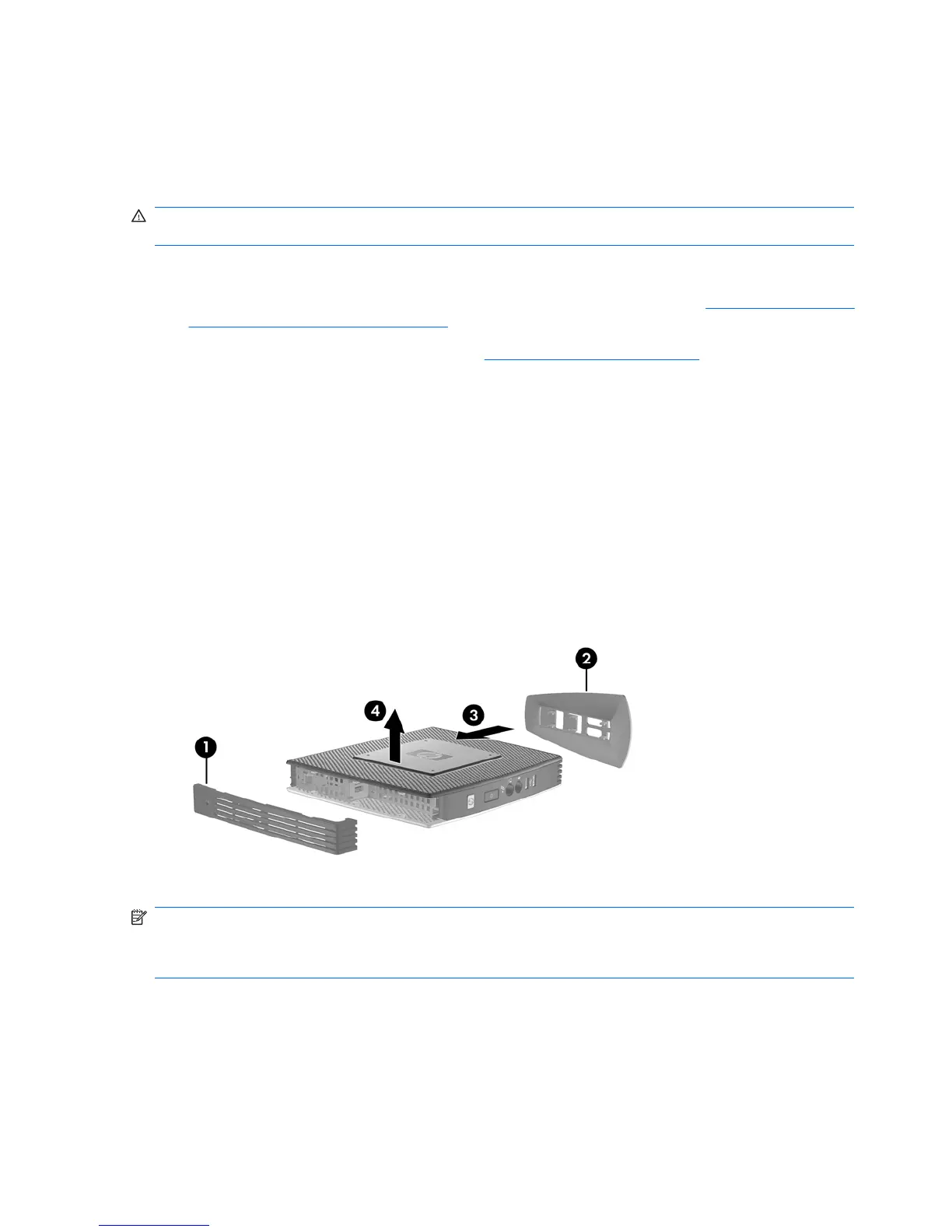 WARNING! Before removing the side access panel, ensure that the thin client is turned off and the