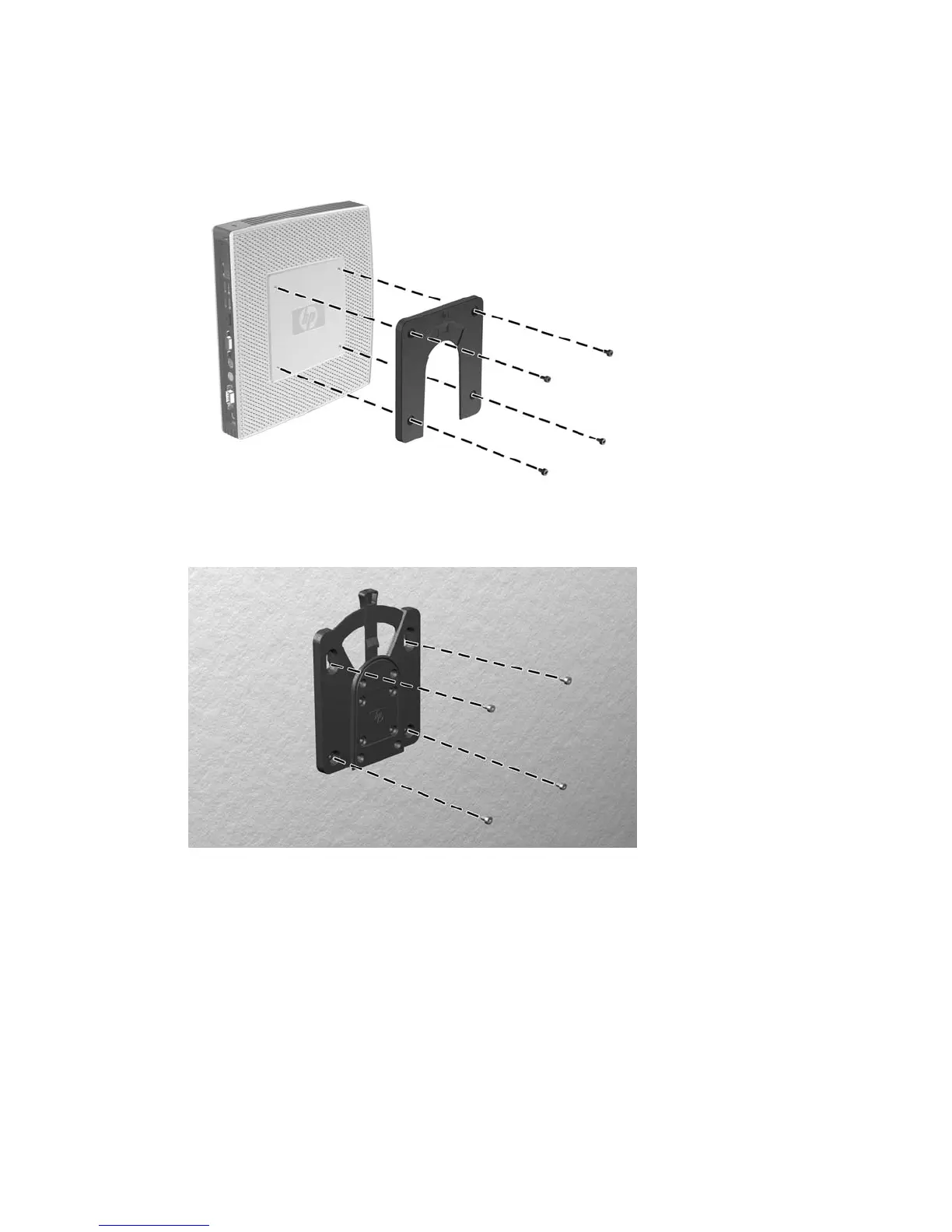 1. Using four 15 mm screws included in the mounting device kit, attach one side of the HP Quick