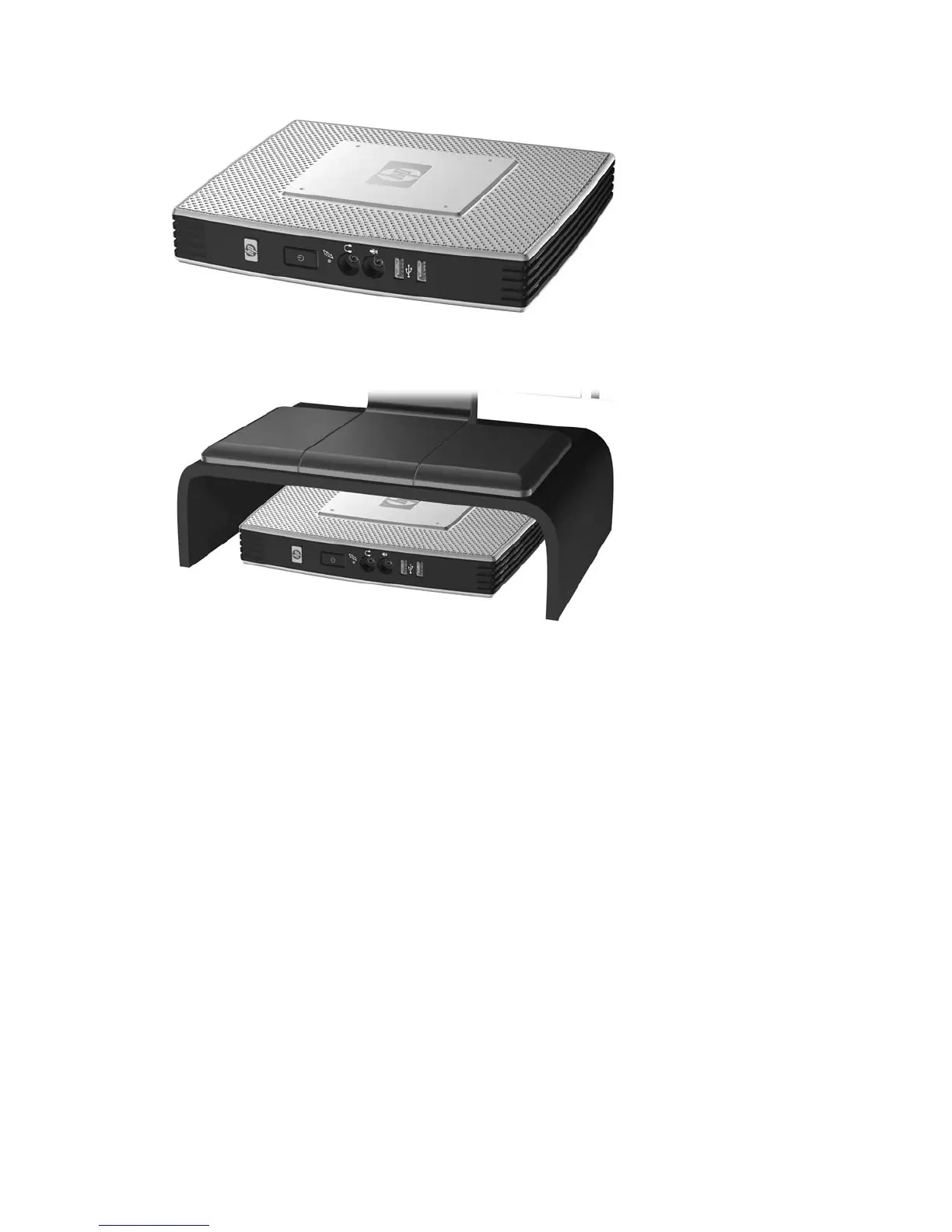 You can lay the thin client under a monitor stand with at least one inch of clearance.