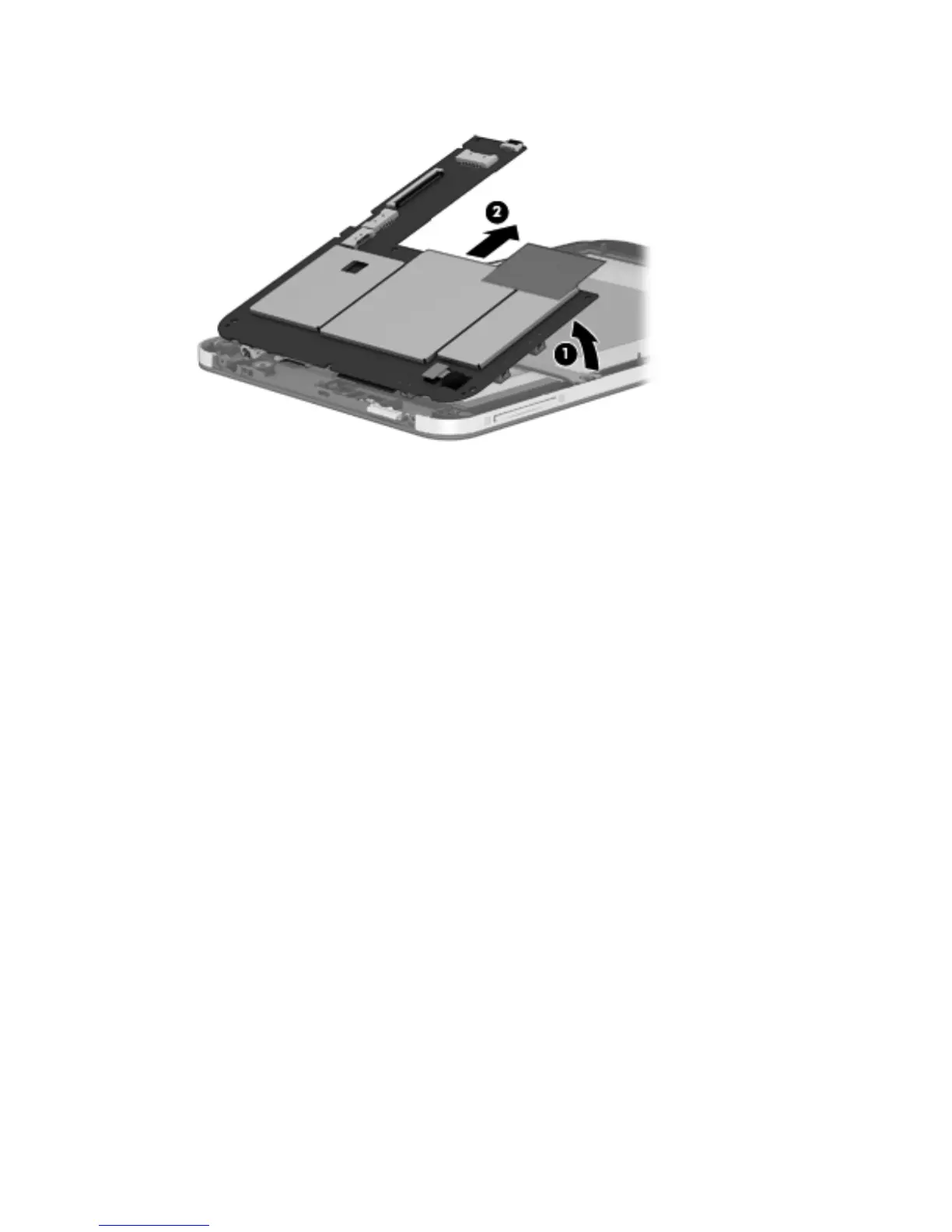 Remove the system board (2) by sliding it up and to the right at an angle.