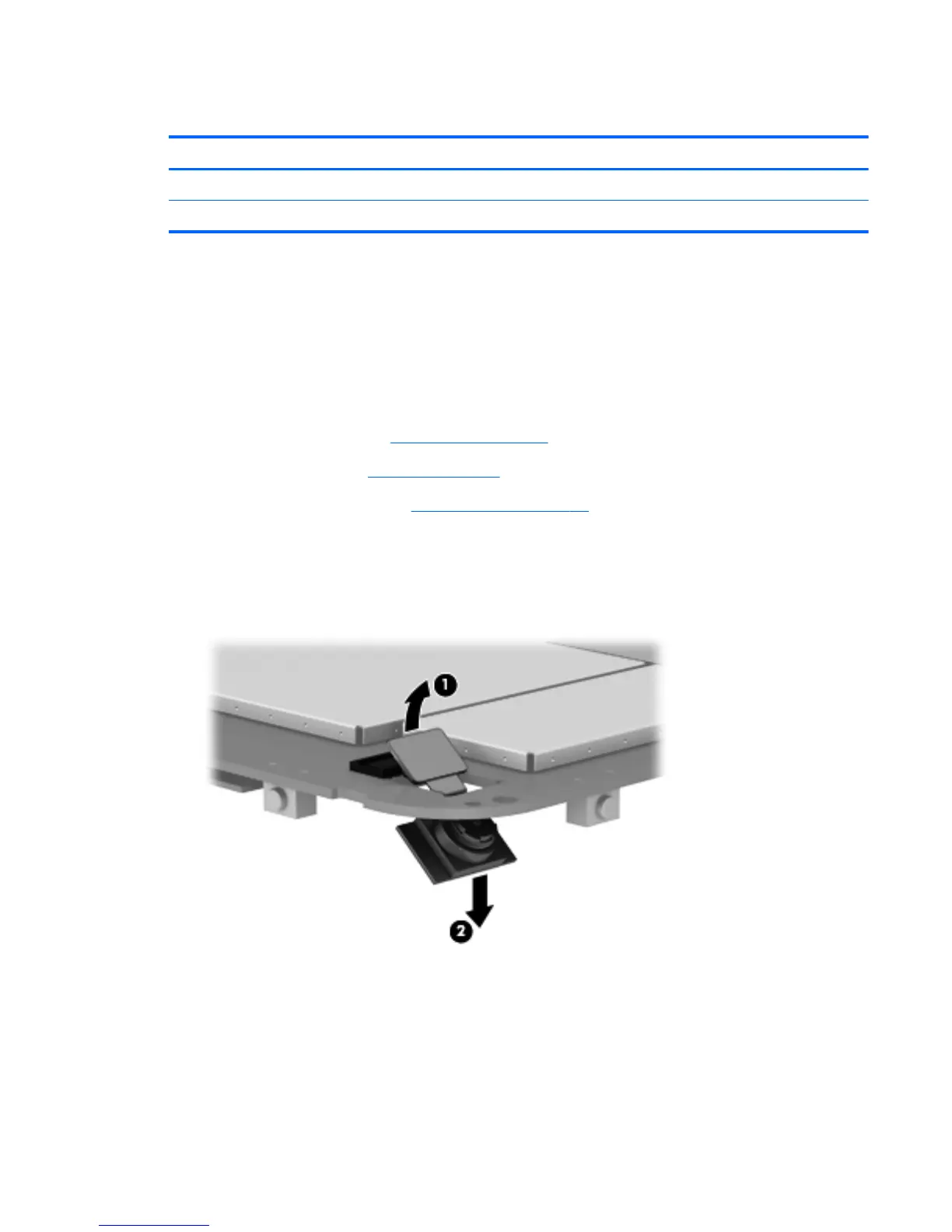 1. Disconnect the rear-facing webcam cable (1) from the system board.