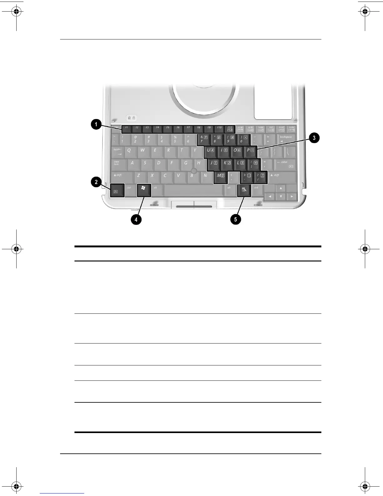 Fn Combines with other keys to perform system