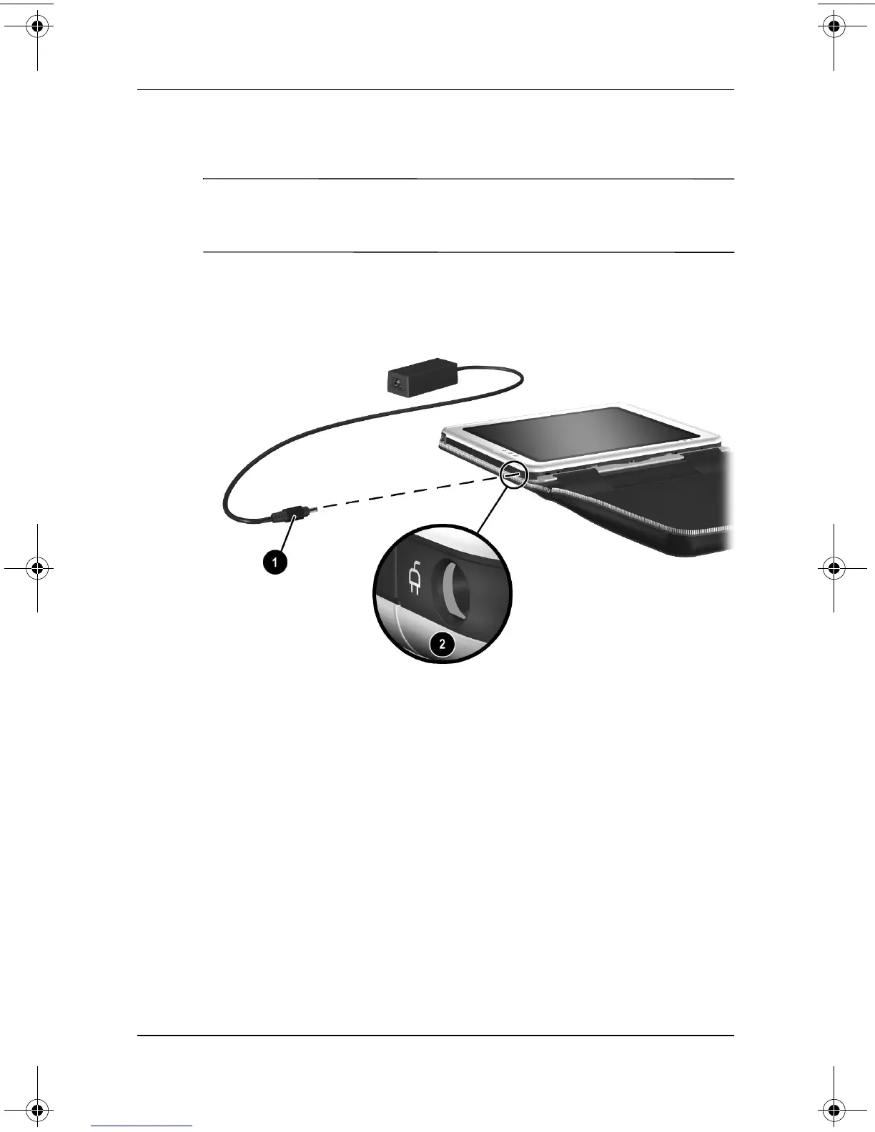 1. Plug the AC adapter cable 1 into the AC power connector 2.