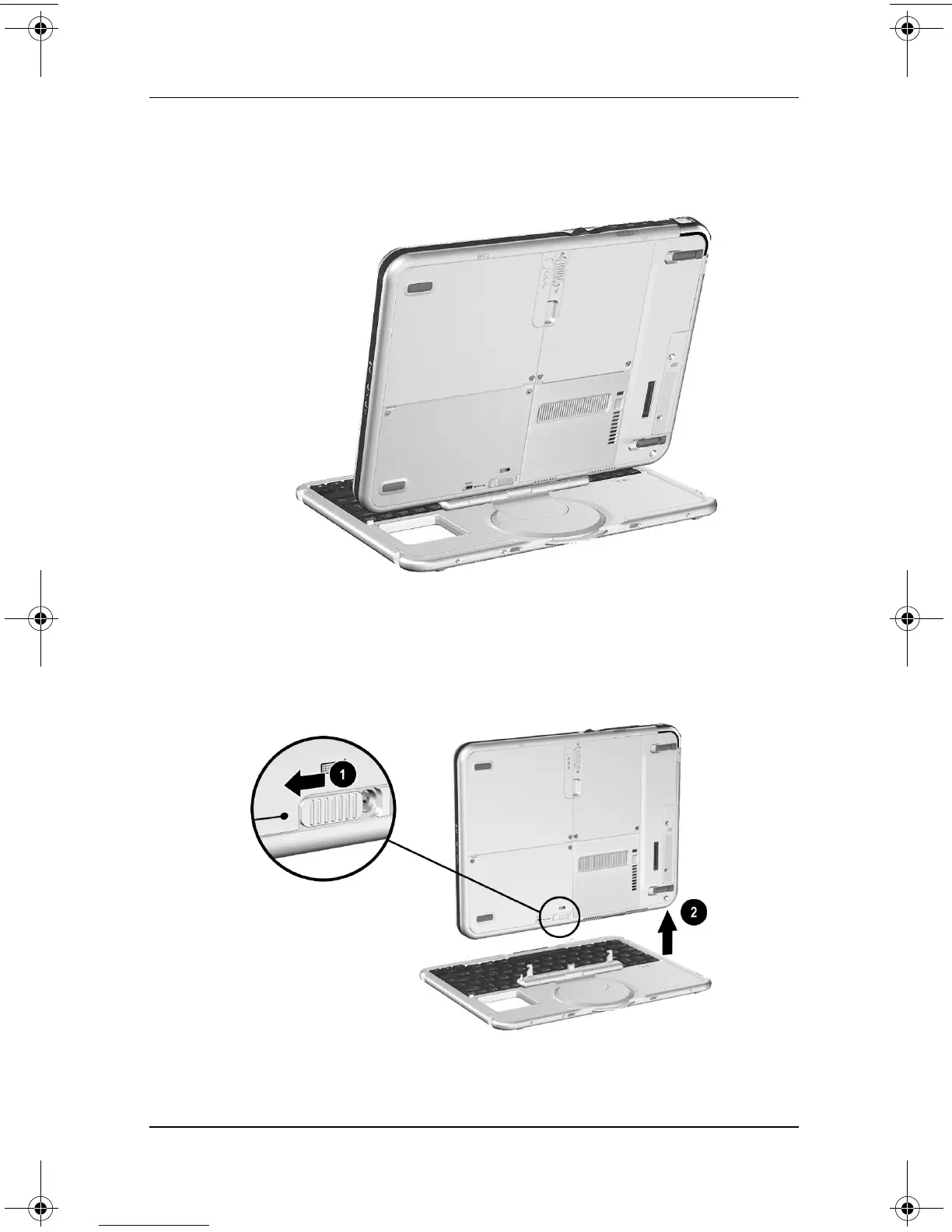 Positioning the tablet PC and keyboard to detach the tablet PC