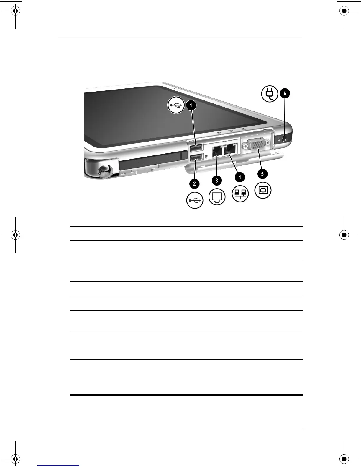 RJ-45 network jack Connects an Ethernet network cable.