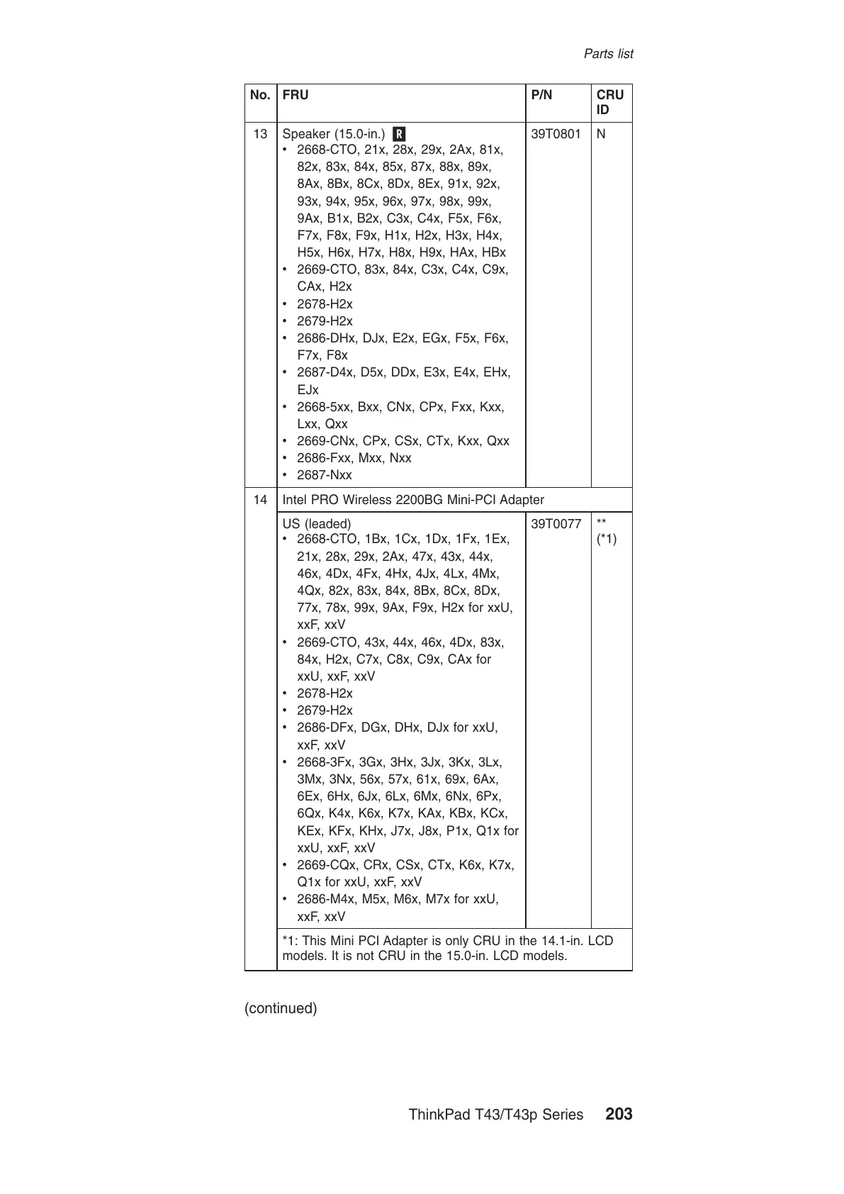 *1: This Mini PCI Adapter is only CRU in the 14.1-in. LCD