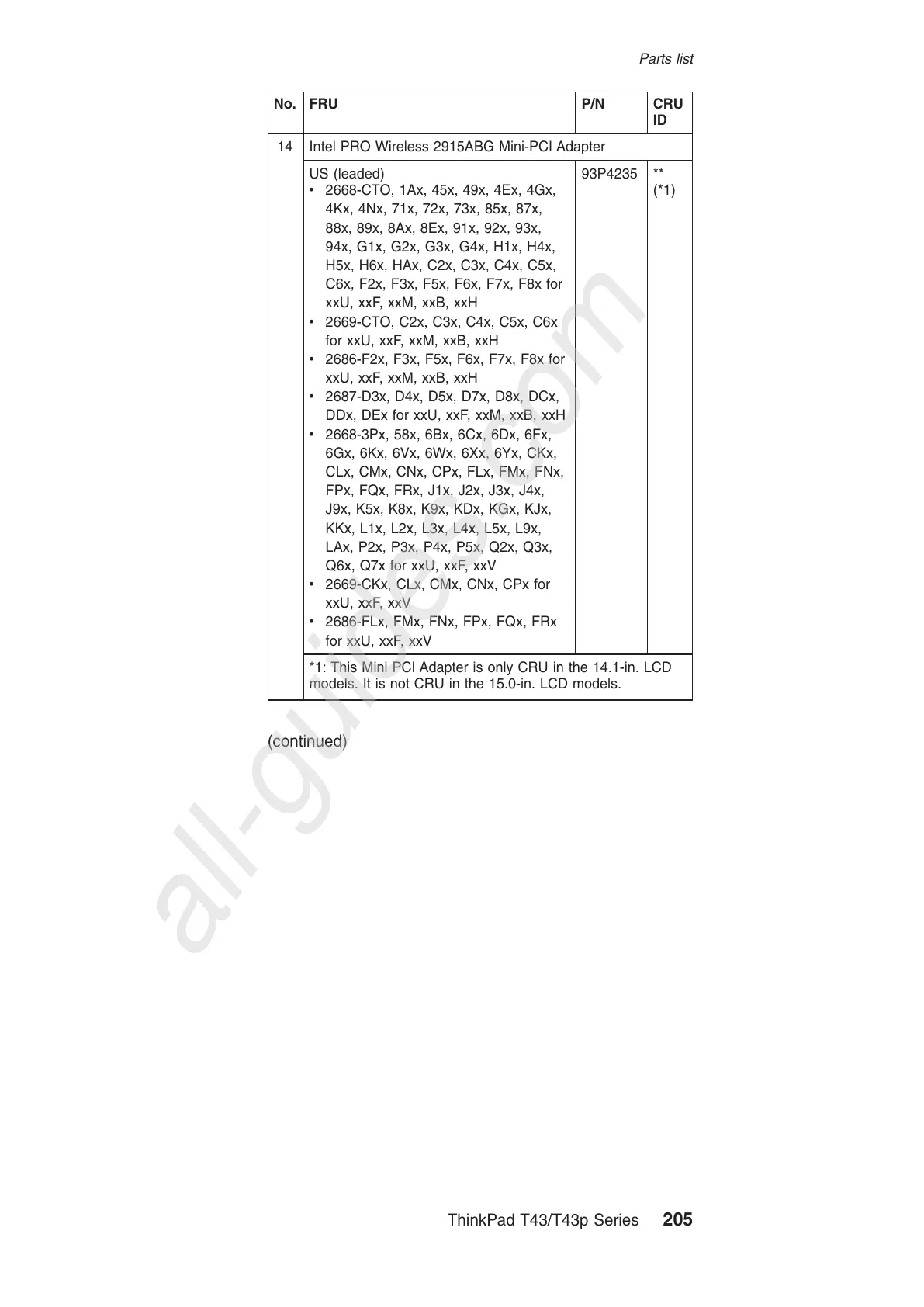 *1: This Mini PCI Adapter is only CRU in the 14.1-in. LCD