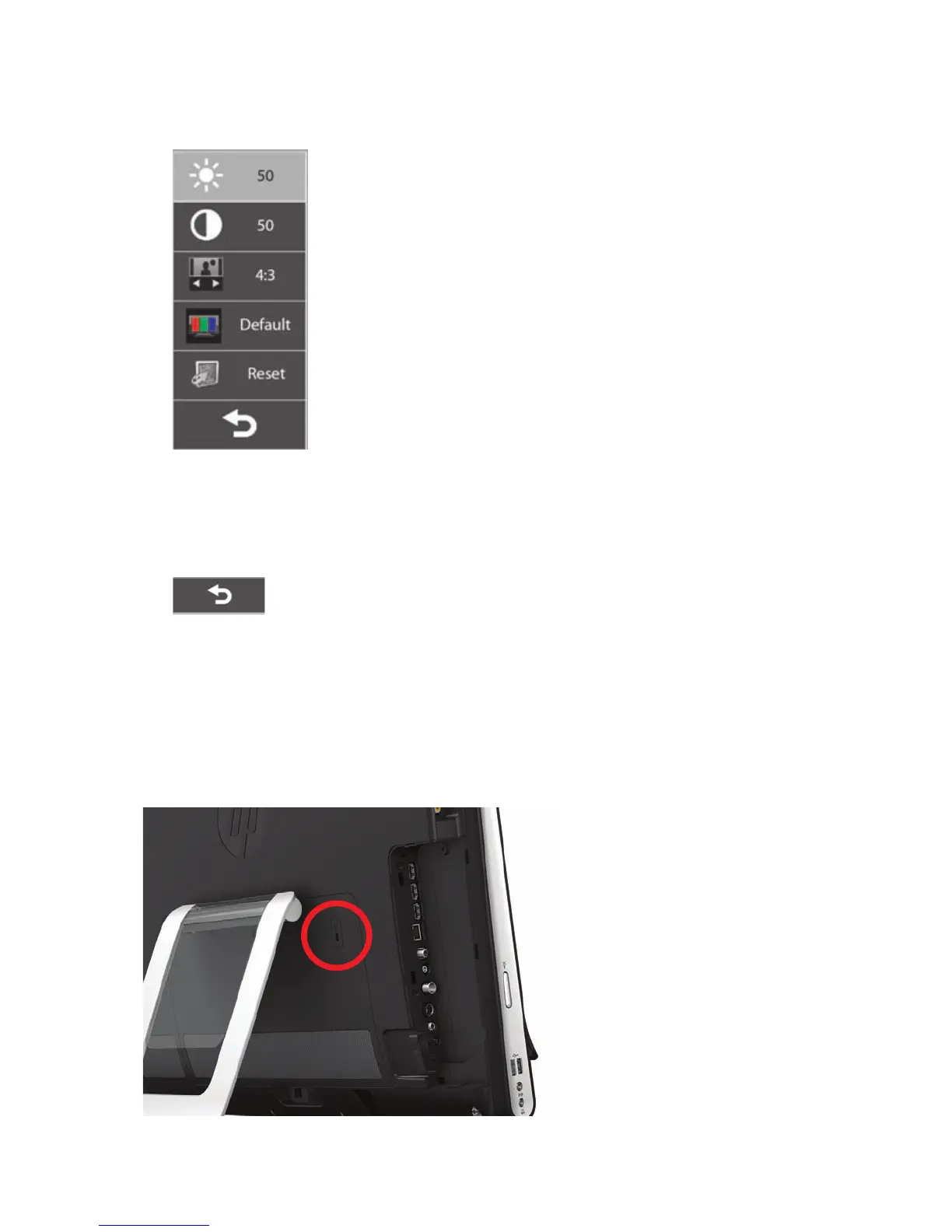 1 Appuyez sur le bouton de réglage de l’affichage qui figure sur le côté droit de l’ordinateur.