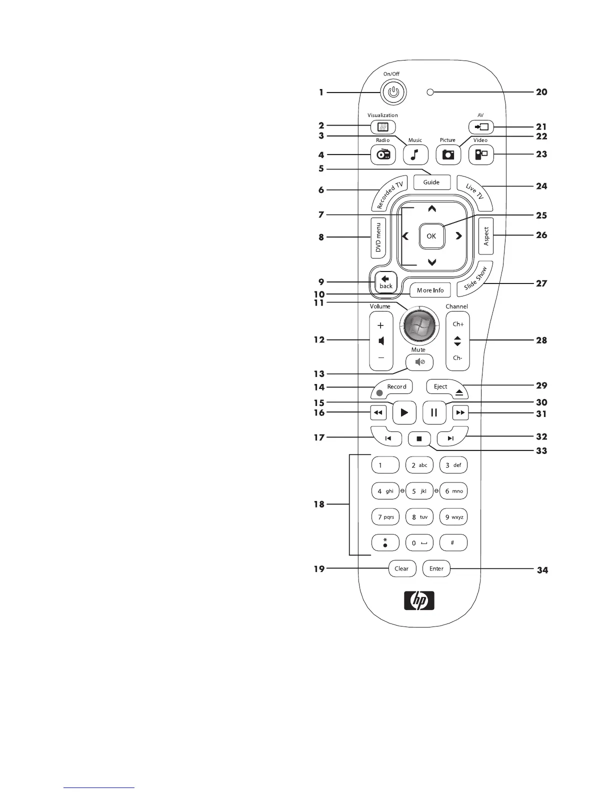 14 Record — Records a selected television program and stores it on the hard disk drive.