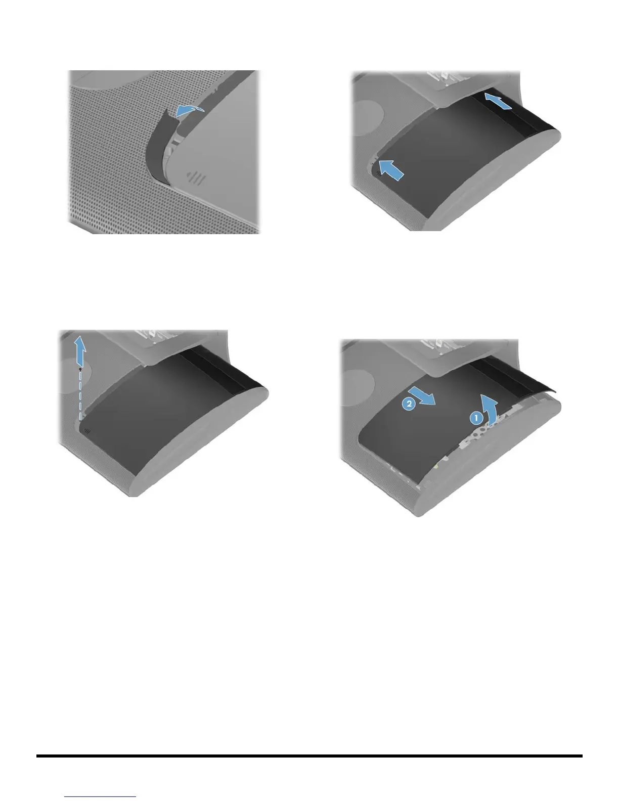 11 Lift (1) and remove (2) the drive door from the back of