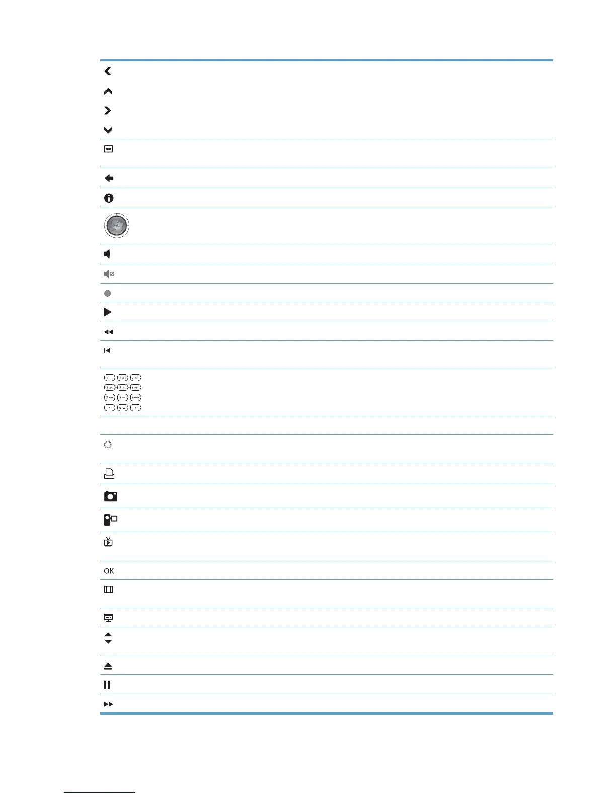 0 to 9, #, * — Enters text and numbers into a Windows Media Center search or text box. Each