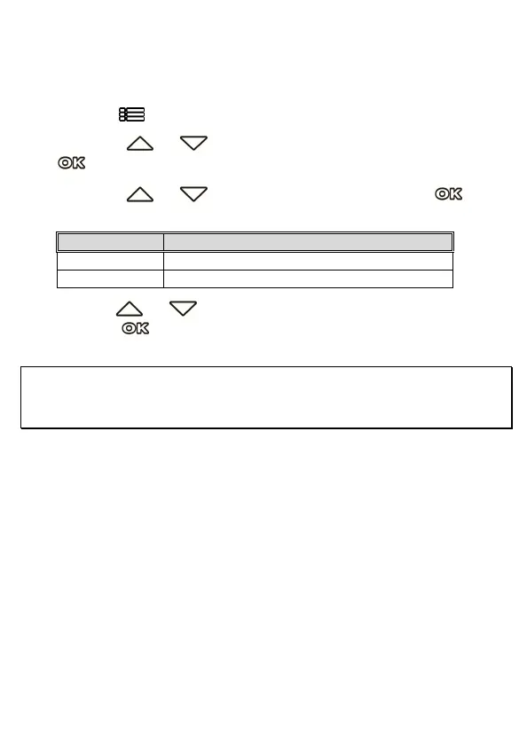 button to confirm. The following options will display in screen,