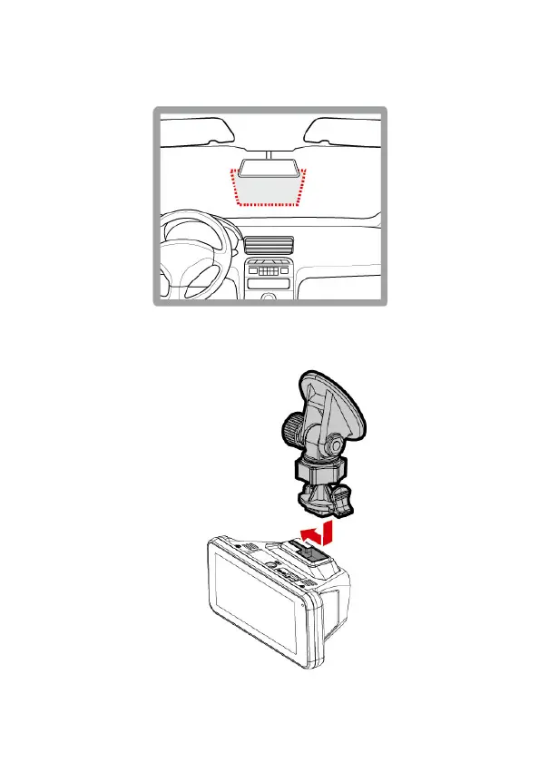 1. 將靜電貼安裝在下圖所示建議區域的擋風玻璃上,安裝前請將玻璃擦
