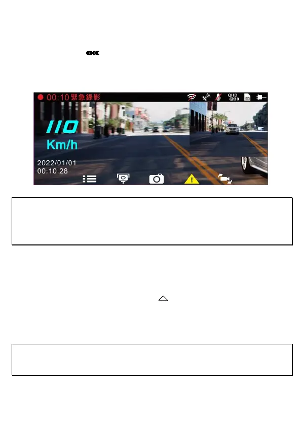 按鍵將會進入緊急錄影模式,並於螢幕左上角顯示 "
