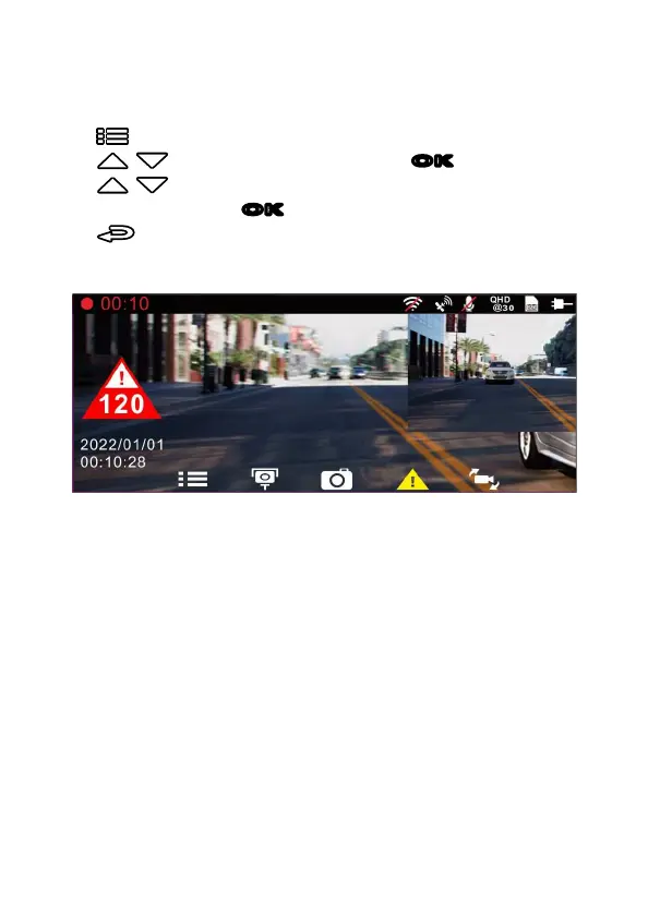 5. 行駛中, 若出現警示畫面及警示音表示行車時速已超過自訂的限速
