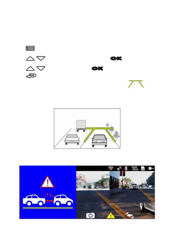 備使車道對齊圖示的水平線與路面視平線水平重疊;車道對齊圖示的