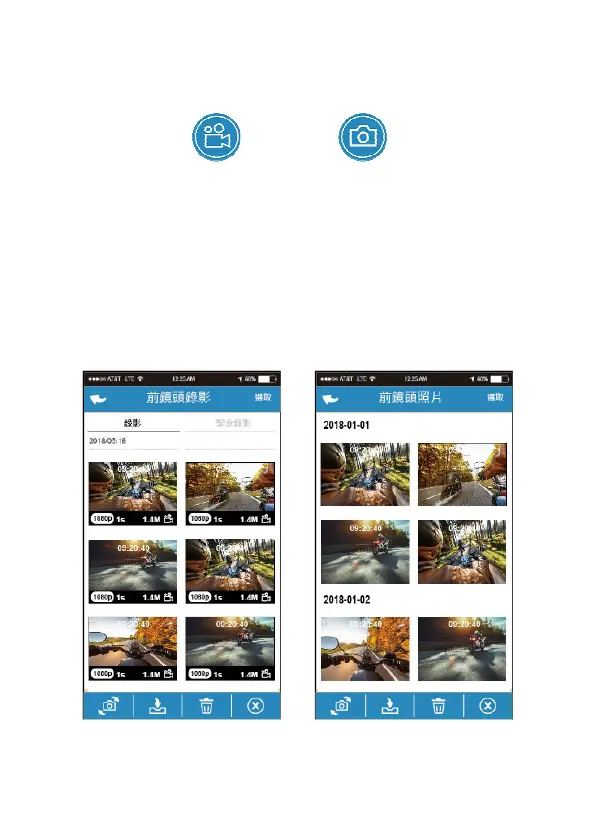 您可以使用此功能播放或刪除行車記錄器拍攝的照片與影片或是下載其照片