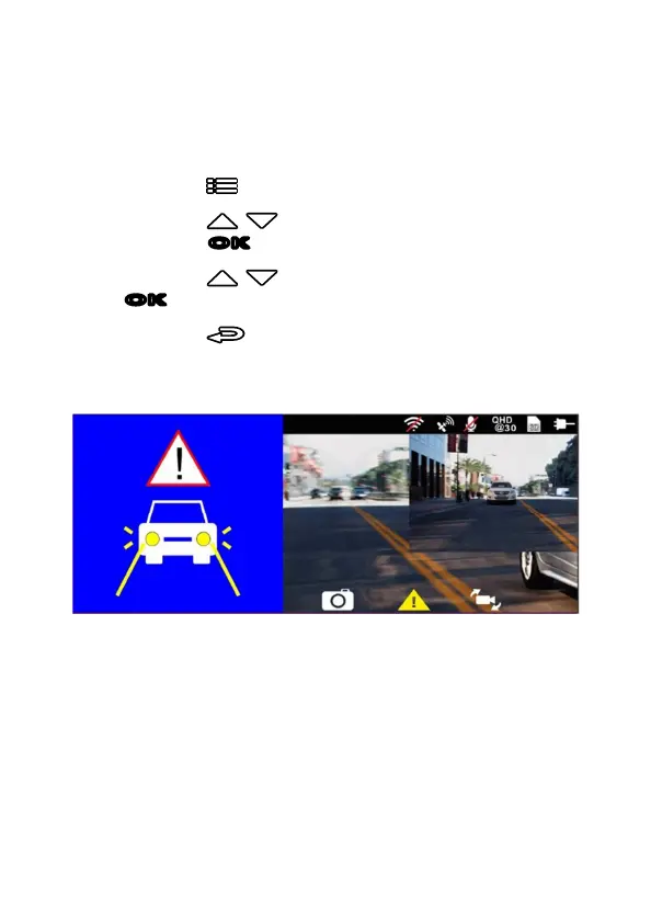 2. Presione el botón / para seleccionar Advertencia de faro, y luego