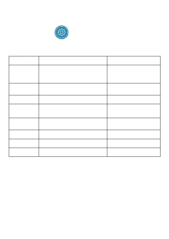 2. 可用选单如表,请依个人需求或喜好进行设定。