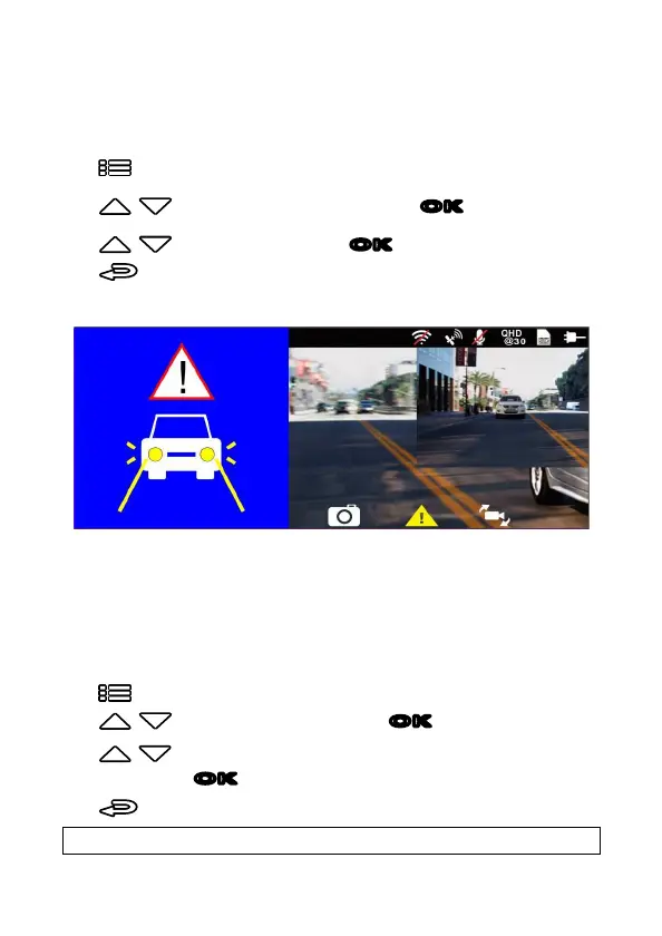 當設備偵測到前鏡頭錄影畫面的亮度不足時 (例如:車