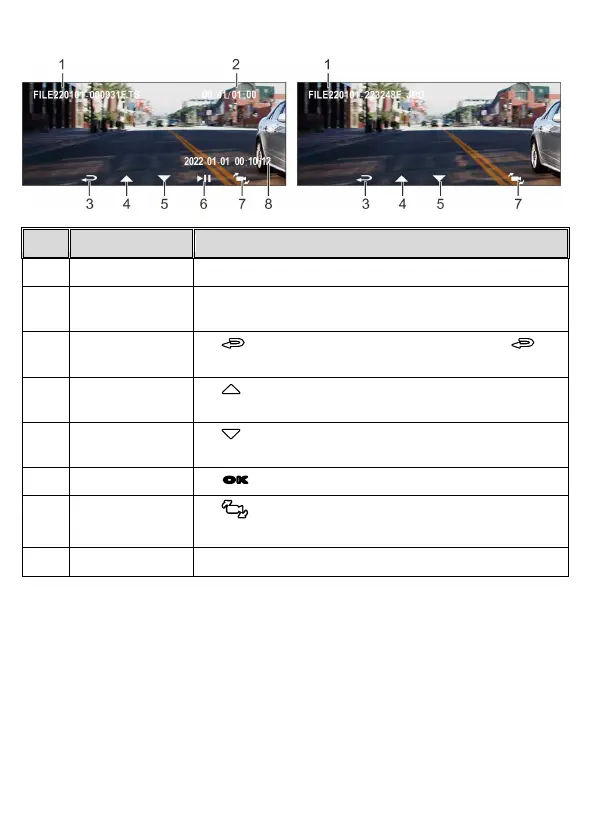 按鍵可切換到上一個檔案。影片播放時可快退影