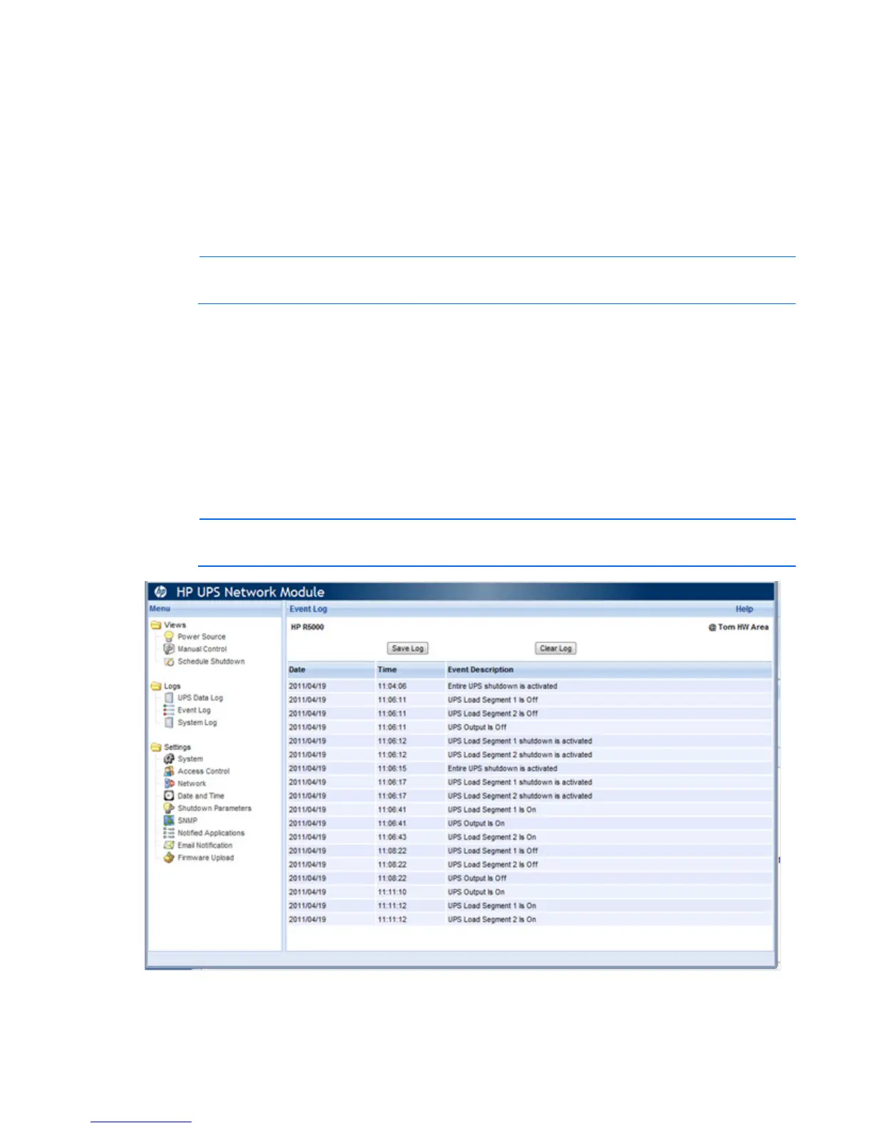 NOTE: In the UPS Data Log and the Event Log, the date and time stamps are converted to the