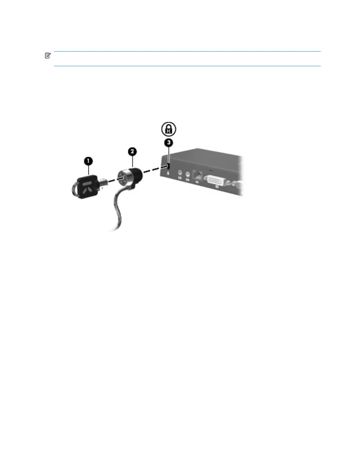 3. Insert the cable lock into the security cable slot on the docking station (3), and then turn the key.