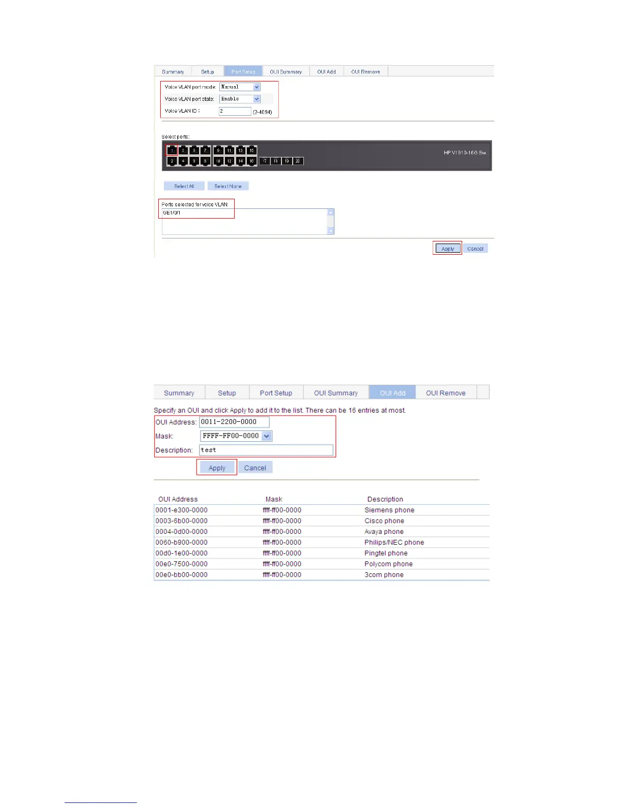 Select Manual in the Voice VLAN port mode drop-down list.
