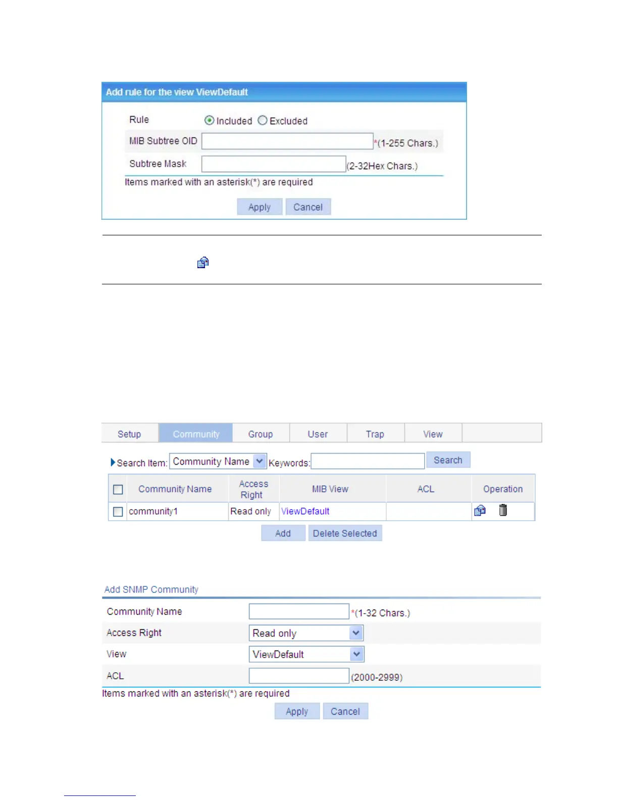Table 31 Click Add to enter the Add SNMP Community page as shown in c.