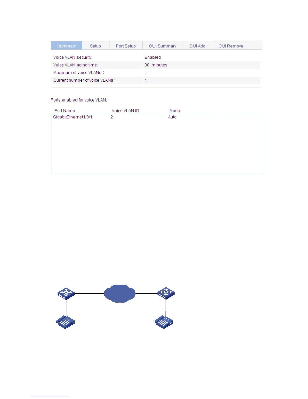 a. Network diagram for manual voice VLAN assignment mode configuration