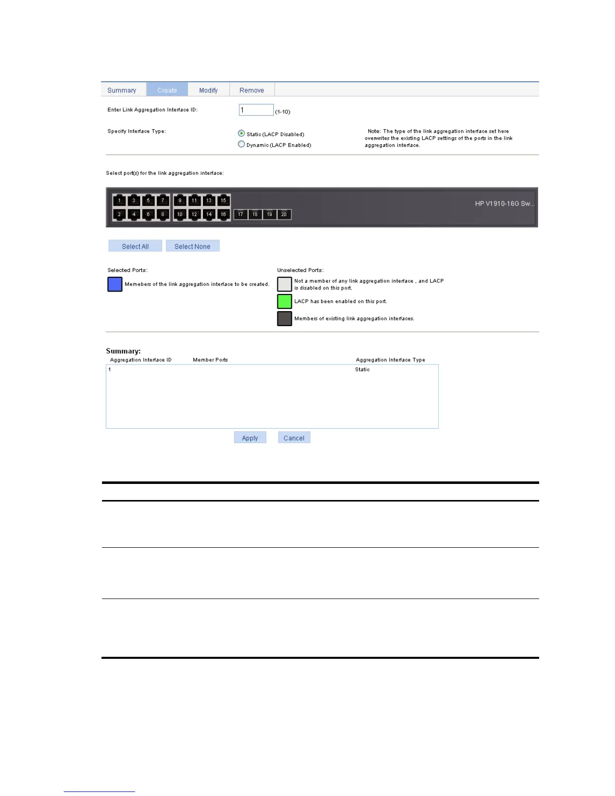 Select port(s) for the link aggregation