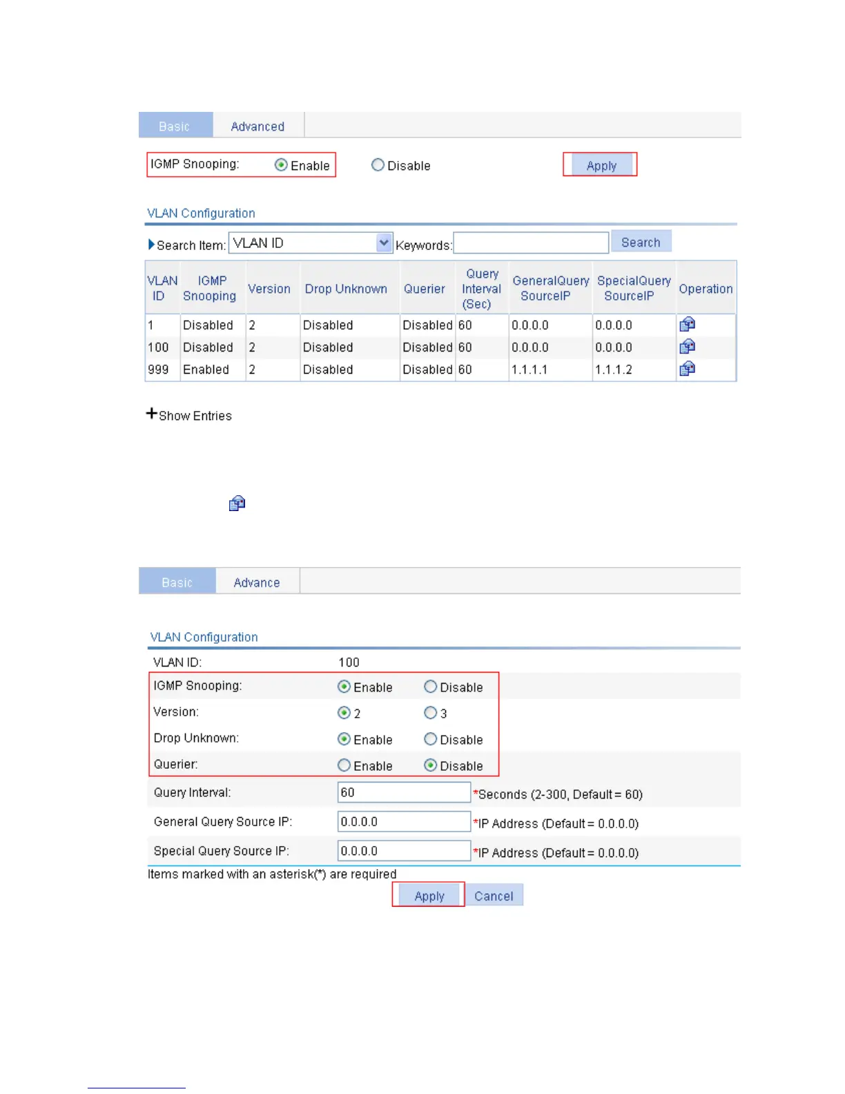 icon corresponding to VLAN 100 to enter its configuration page and perform the