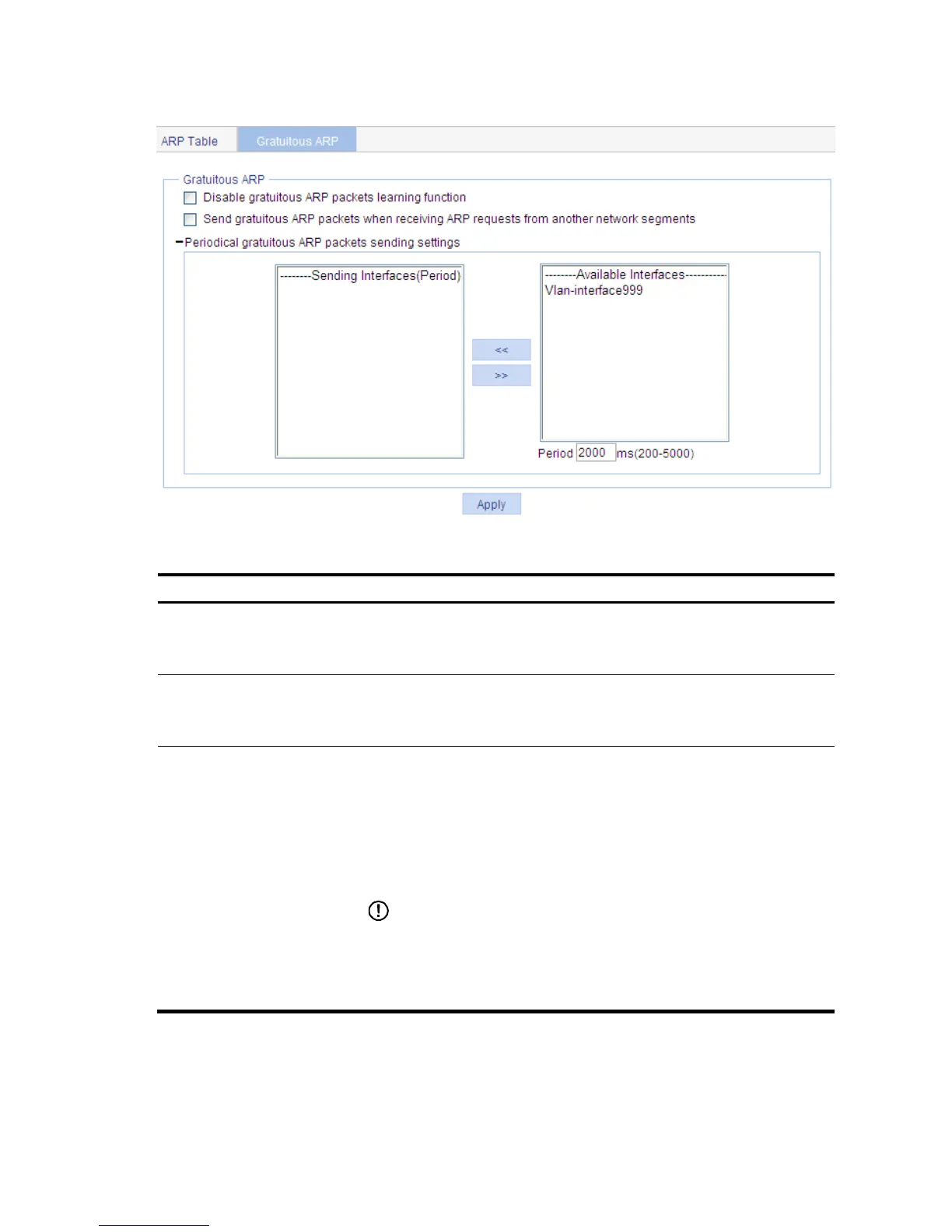 Select interfaces for sending gratuitous ARP packets and type the sending