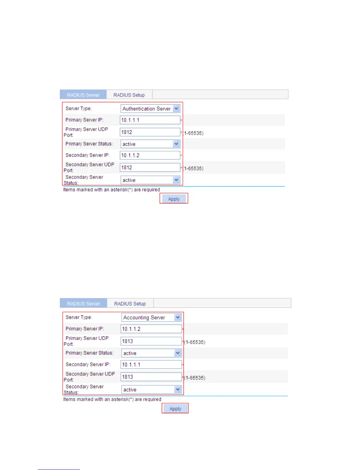 From the navigation tree, select Authentication RADIUS. The RADIUS server configuration page