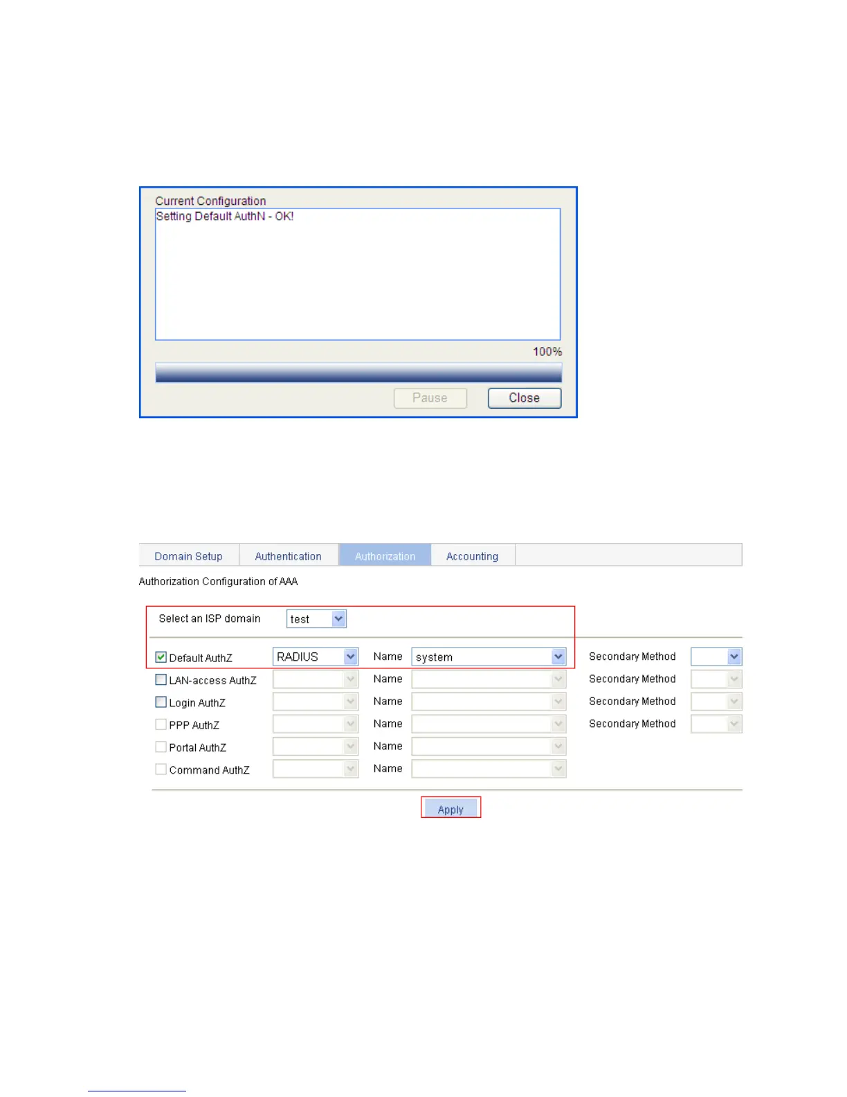 Click Apply. A configuration progress dialog box appears, as shown in g.
