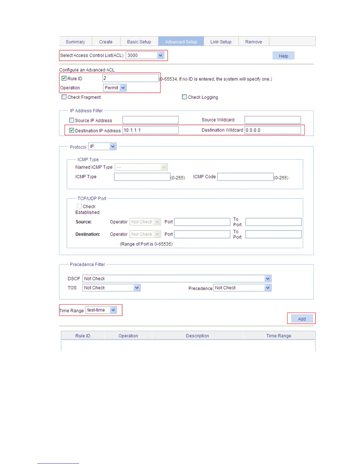 Select the Destination IP Address option, and type IP address 10.1.1.1 and destination wildcard mask