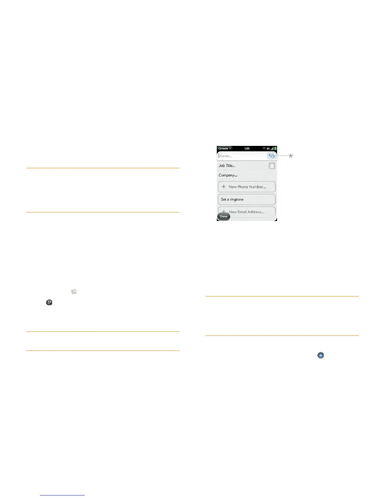 6 Tap fields to enter contact details, select a ringtone for this contact,