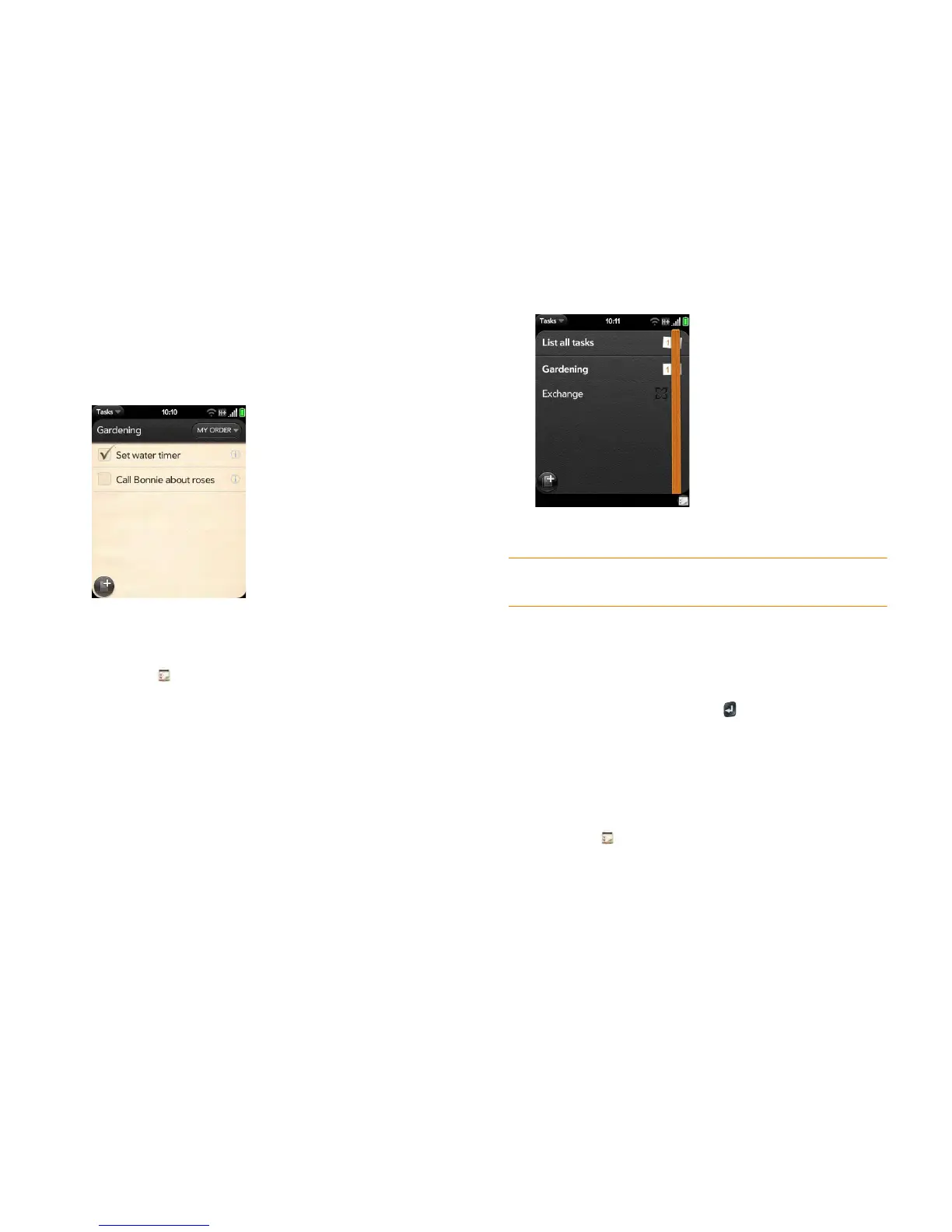 NOTE Ta p Exchange to view task lists and tasks synchronized from your