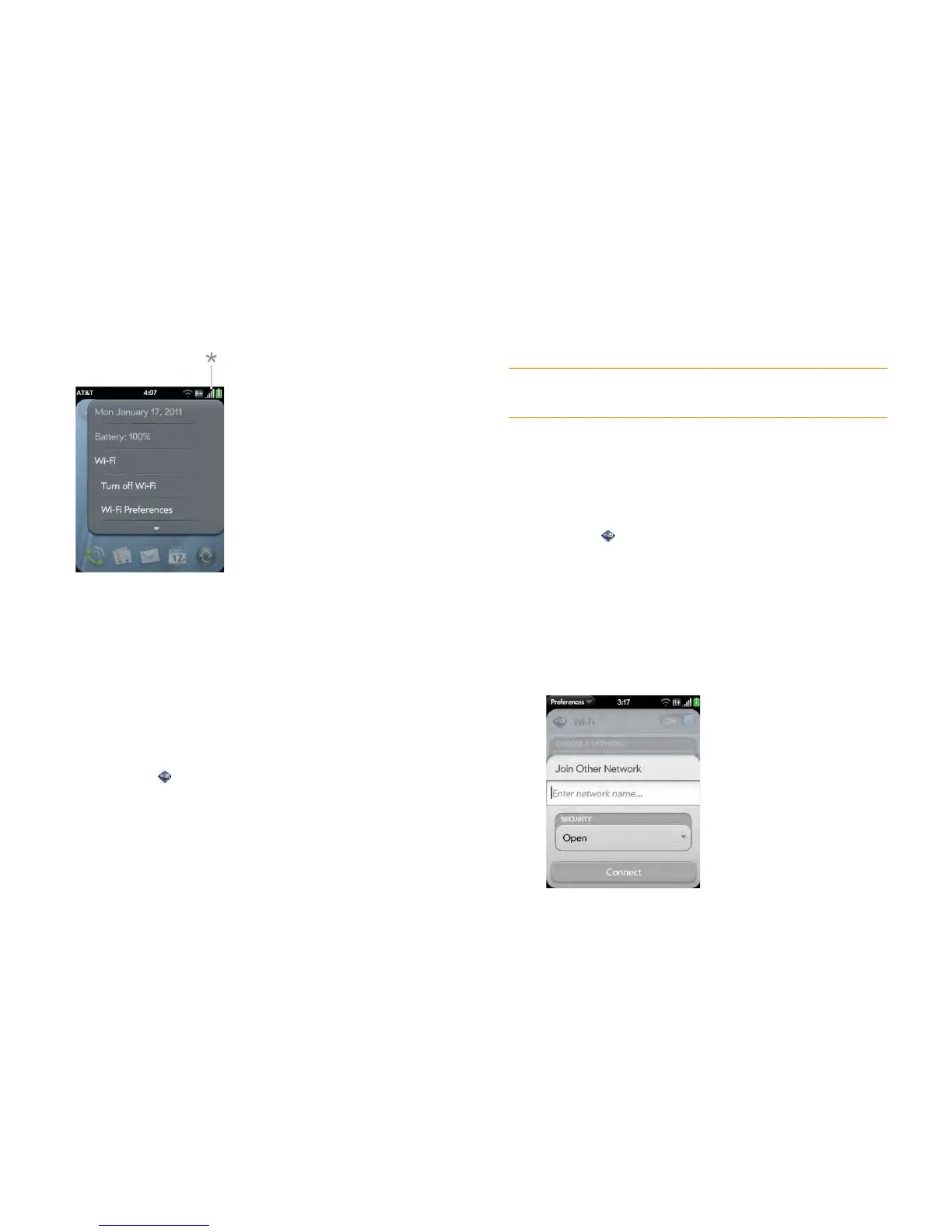 TIP You can also open Wi-Fi by opening the connection menu, tapping Wi-Fi,