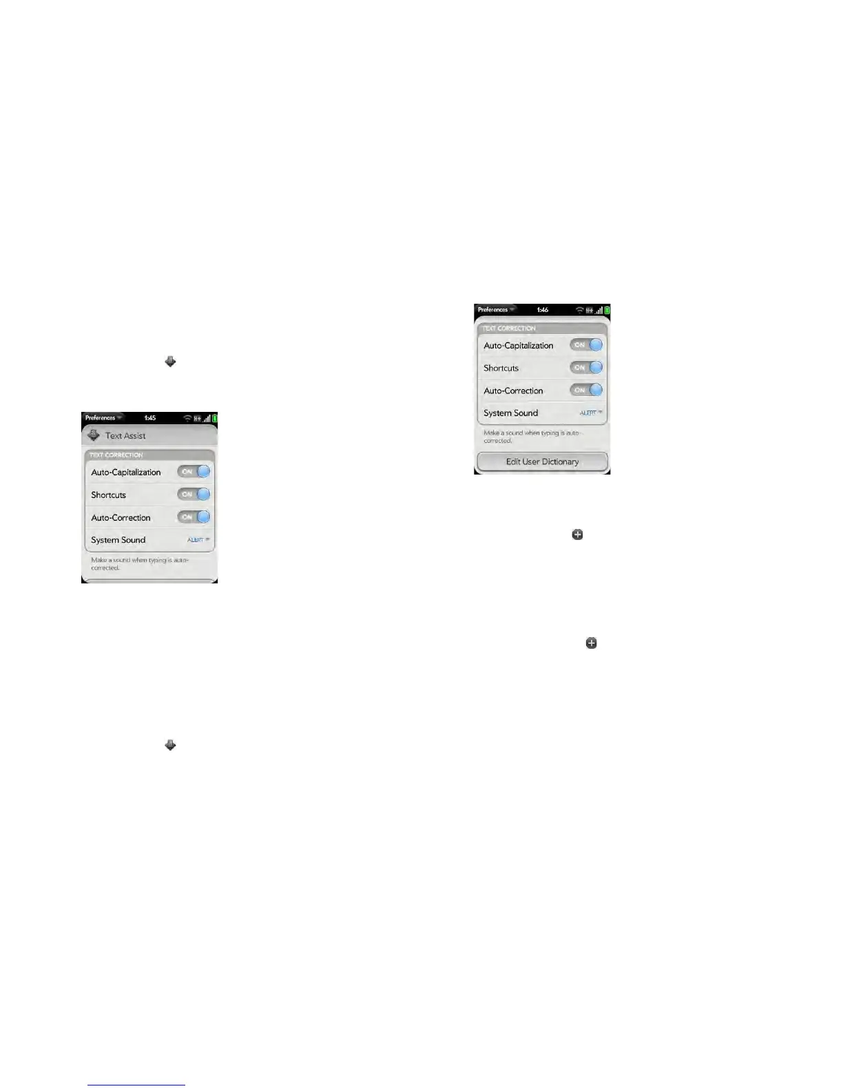 auto-capitalization, and shortcuts. To customize the user dictionary, see Add