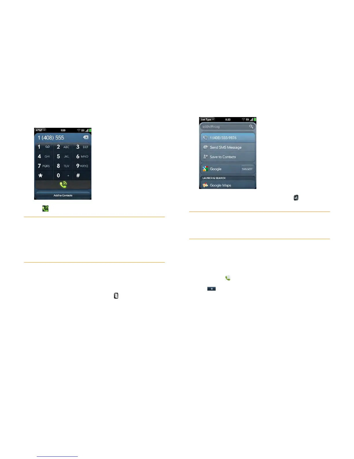 1 In the Launcher, Card view, or Phone, use the keyboard to enter the