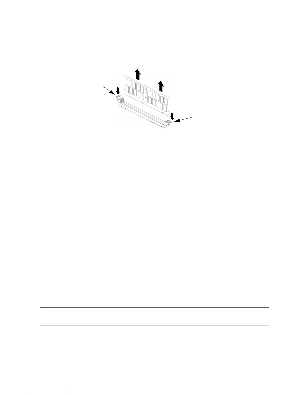 2. Press downward on the ejector tabs located on both sides of the DIMM connector. See