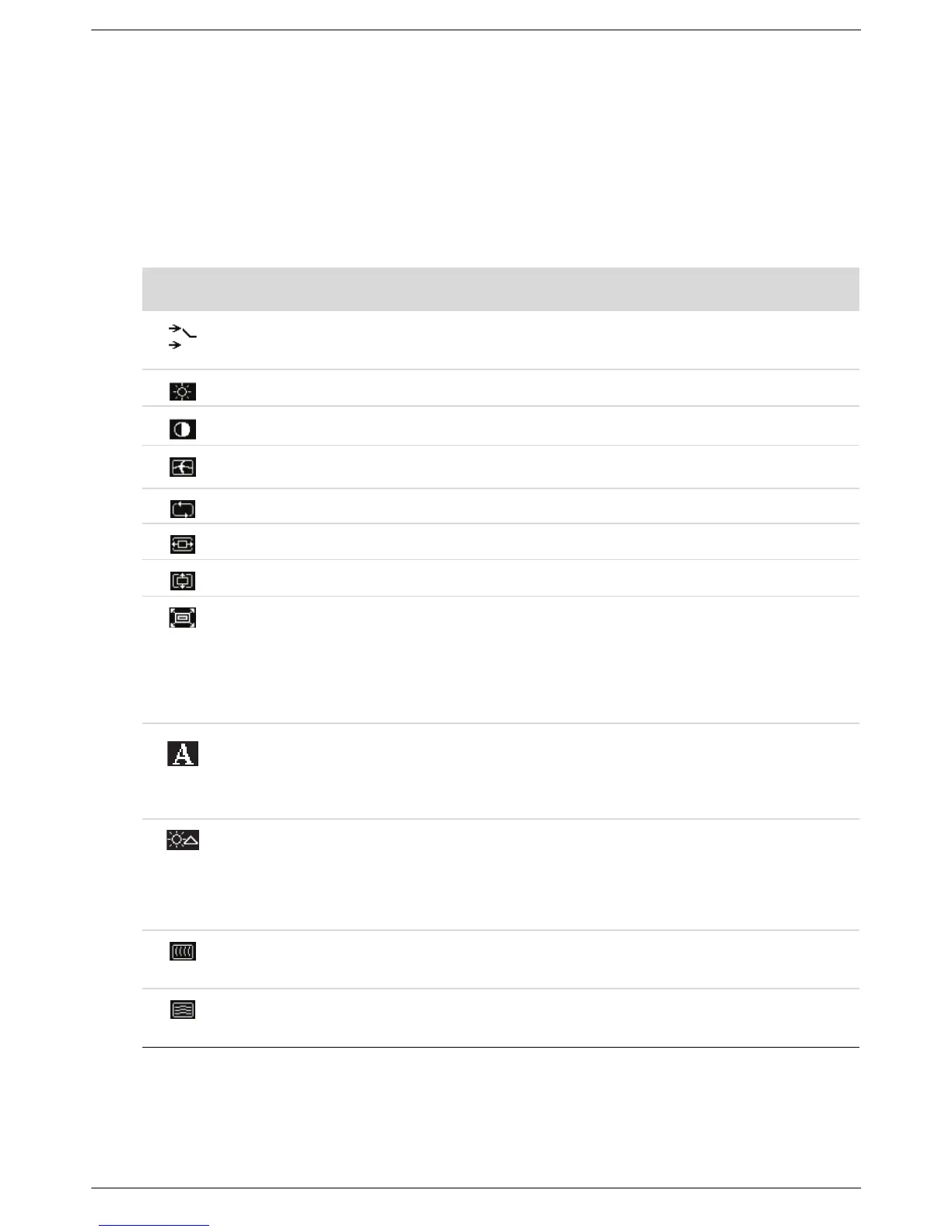 Contrast Adjusts the contrast level of the screen.