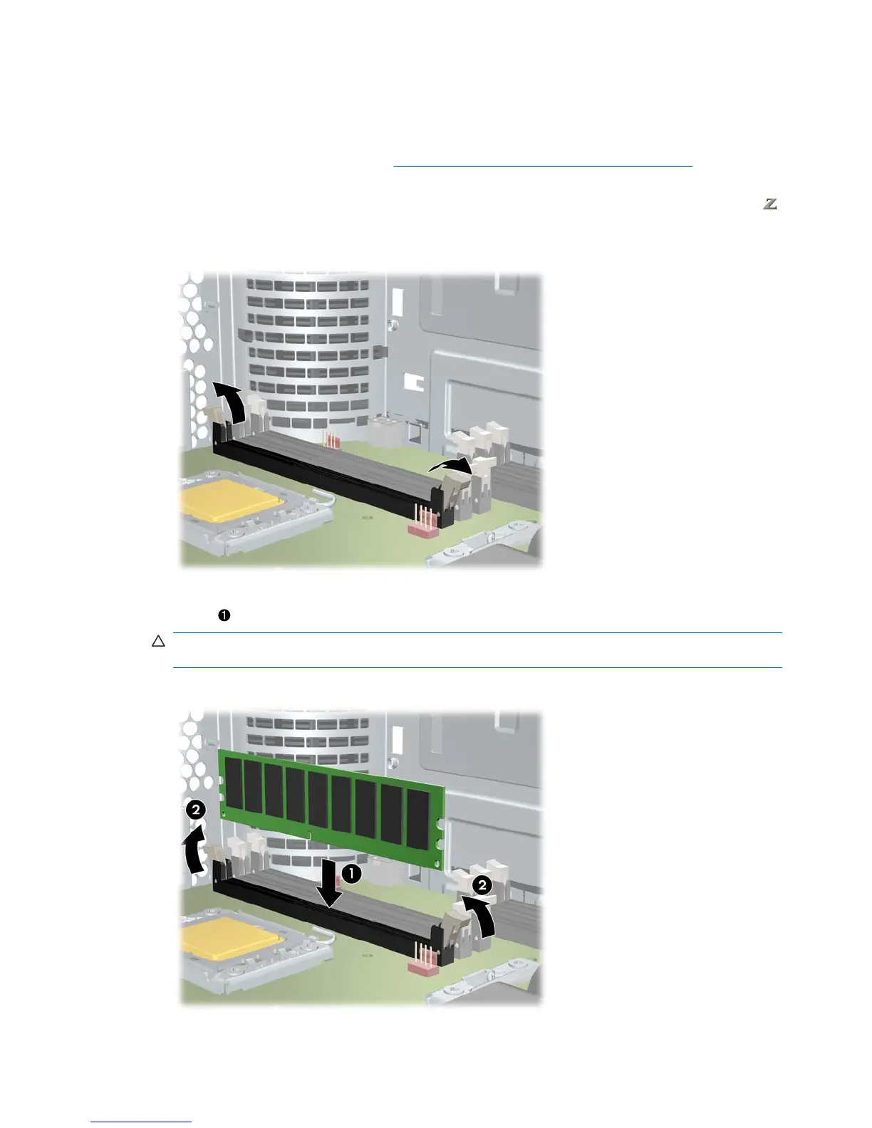 2. Push gently outward on the DIMM socket levers as shown in the following illustration. (An HP
