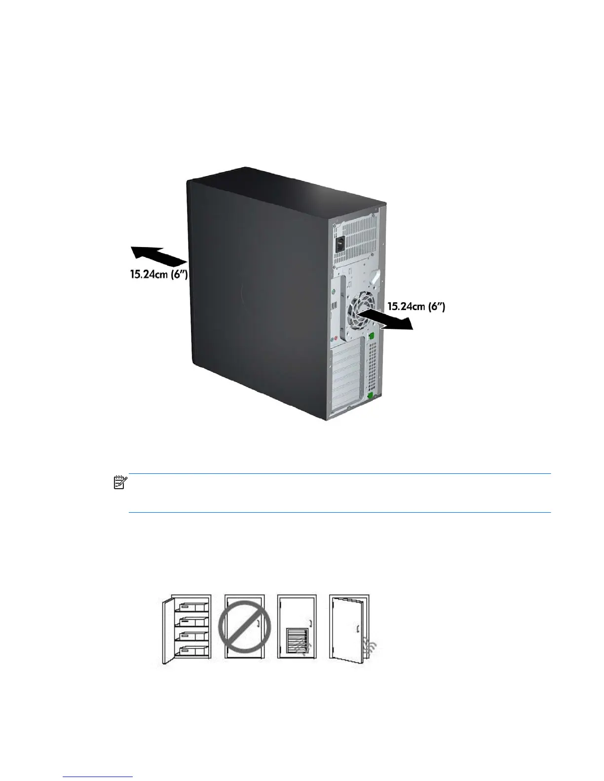 Provide at least 15.24 cm (6 inches) of clearance at the front and back of the workstation.