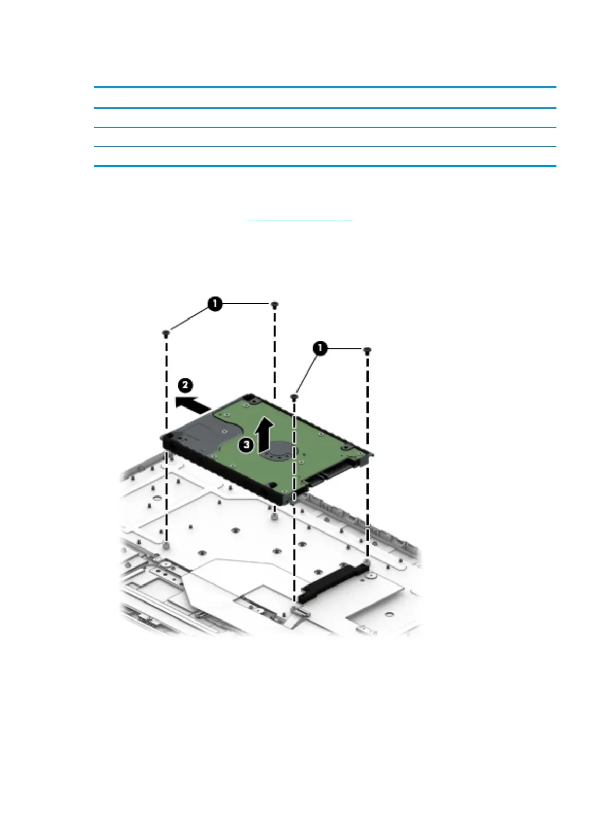 3. To remove the hard drive brackets, remove the four Phillips PM3.0×3.0 screws (1) that secure the