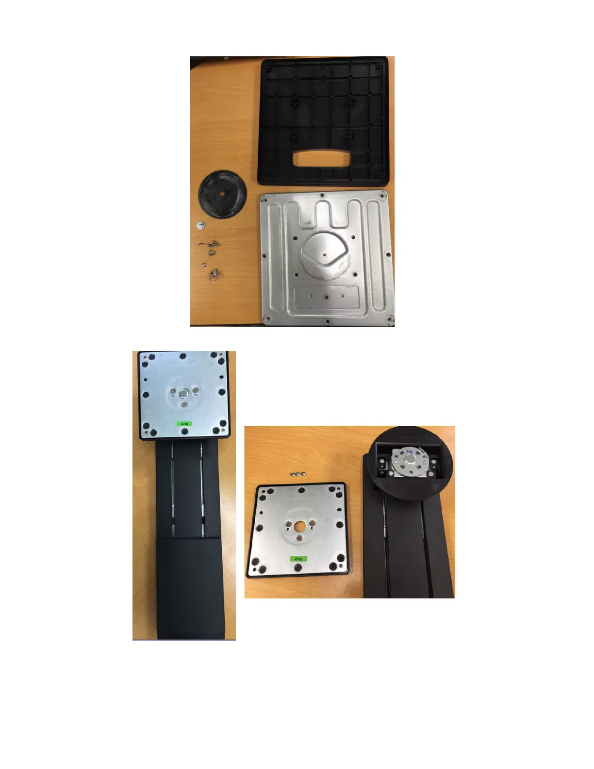 9. Release the screws from the base bracket, then disassemble the base plastic cover, swivel ring , and base bracket.