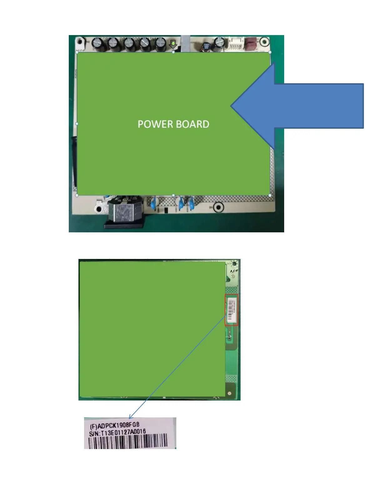 2) Locate the part number location on the board.