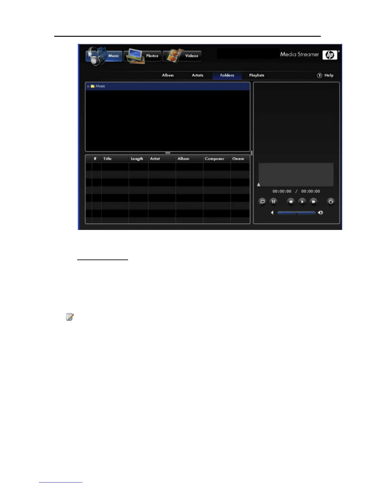 This blue bar shows the item selected in each panel. When you open Media Streamer the Selection